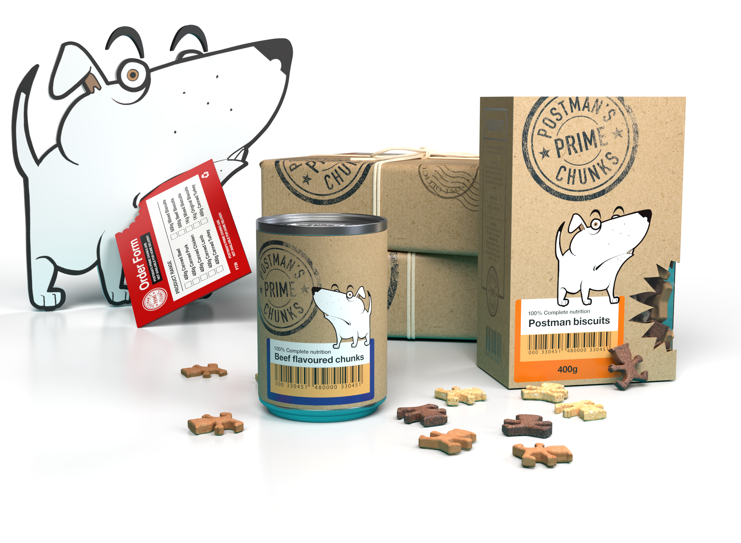 Above: Where it all started: Postman’s Prime Chunks dog food packaging design, winning the Royal Society of Arts Award.